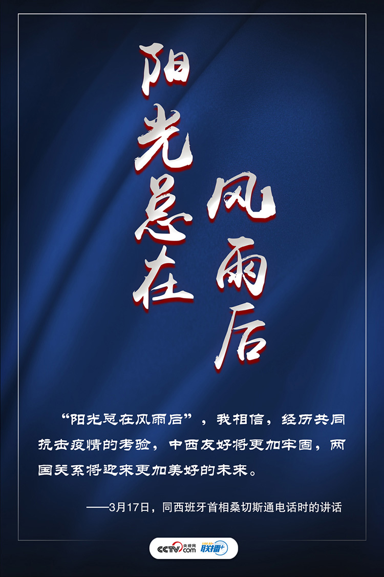 全球战疫期间,习近平频繁同外国元首、政府首脑以及国际和地区组织负责人交流,介绍中国经验、传递必胜信心。特别是疫情在全球多点暴发后,习近平在外交辞令中经常用到“患难见真情”“阳光总在风雨后”“铁杆情谊”“感同身受”这样的暖心话语,表达中方的关心支持,传递同舟共济、携手抗疫的坚定信念。