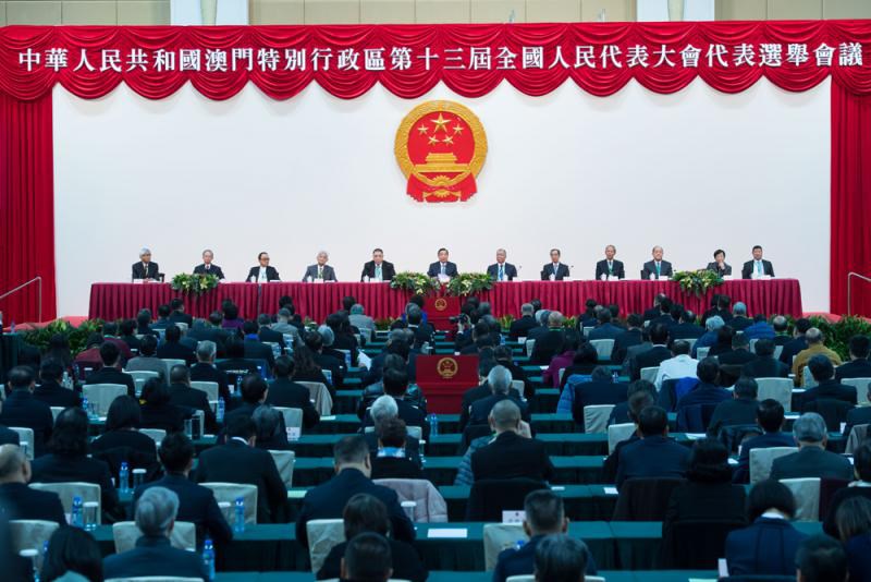澳門特别行政區第十三屆全國人大代表選舉會議昨日在澳門舉行第二次全體會議。出席會議的466位選舉會議成員以無記名、全票制的投票方式,在15名候選人中選出12名新一屆澳區全國人大代表。全國人大常委會副委員長兼秘書長王晨出席會議并發表講話。