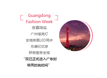广东时装周是广东省内生命力最强、影响面最广、举办历史最长的时装周。一直是行业里的老牌时装周,已成为泛珠三角地区服装界最顶级的时尚盛会、全面拉动服装产业链条的行业交流平台。